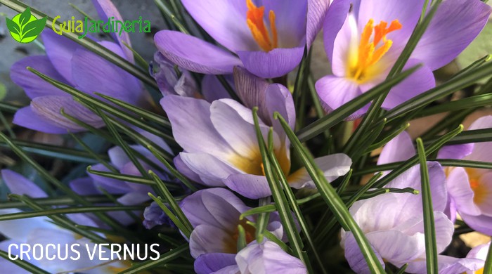 Los crocus vernus son una especie de planta bulbosa perenne que pertenece a la familia Iridaceae. Tienen una altura de unos 10 cm, y sus flores tienen tres pétalos de color blanco, amarillo, naranja, rojo, morado o azul y se plantan en otoño, a una profundidad de unos 5 cm. Florecen en primavera, y sus flores pueden durar varias semanas.