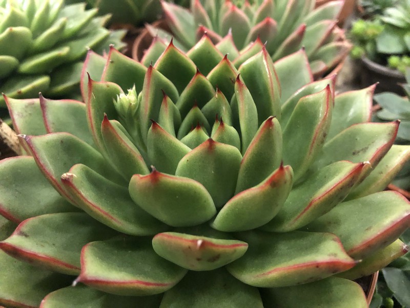 La Echeveria agavoides es una planta suculenta muy apreciada por sus rosetas compactas y hojas carnosas que suelen tener puntas afiladas. Su nombre científico hace referencia a su parecido con las plantas del género Agave, aunque pertenecen a familias distintas.