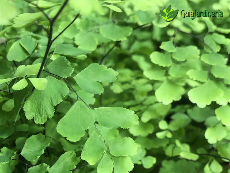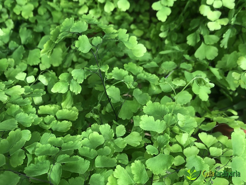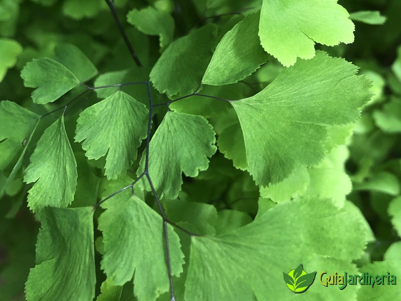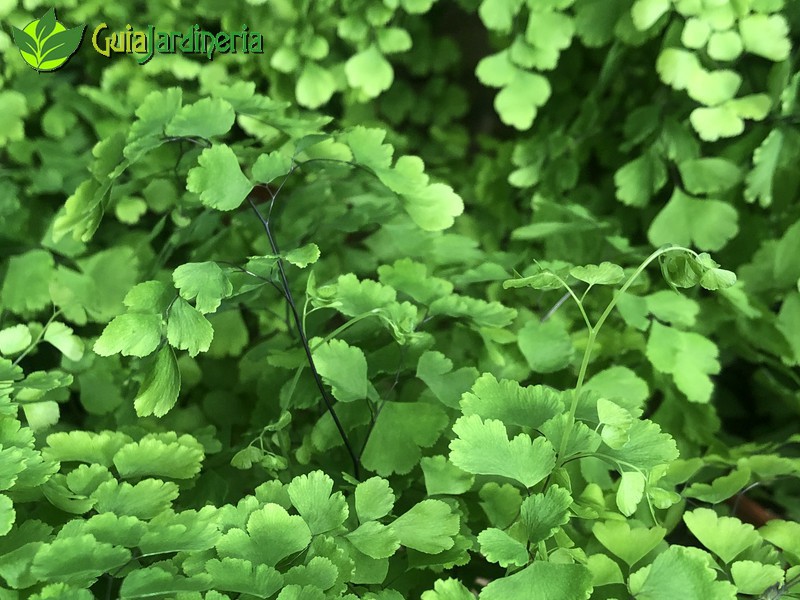 El Adiantum, perteneciente a la especie de helechos de la familia de las Pteridáceas conocido también como Culantrillo, es un helecho delicado y popular por sus finas hojas. Encontrarás más información en este artículo de GuiaJardineria sobre el Adiantum